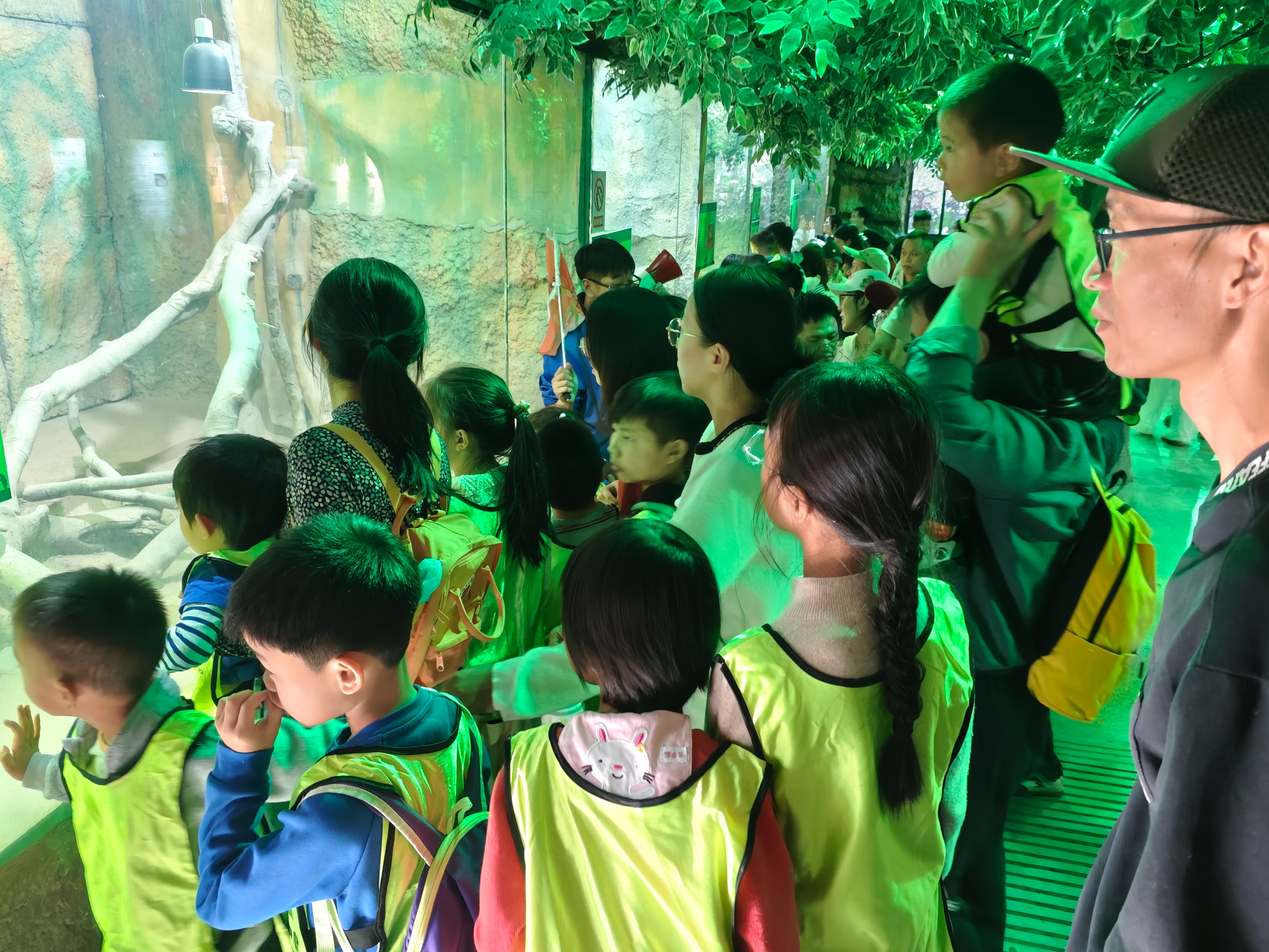 在保育员的带领下,孩子们近距离观察“森林之王”的午餐时间。