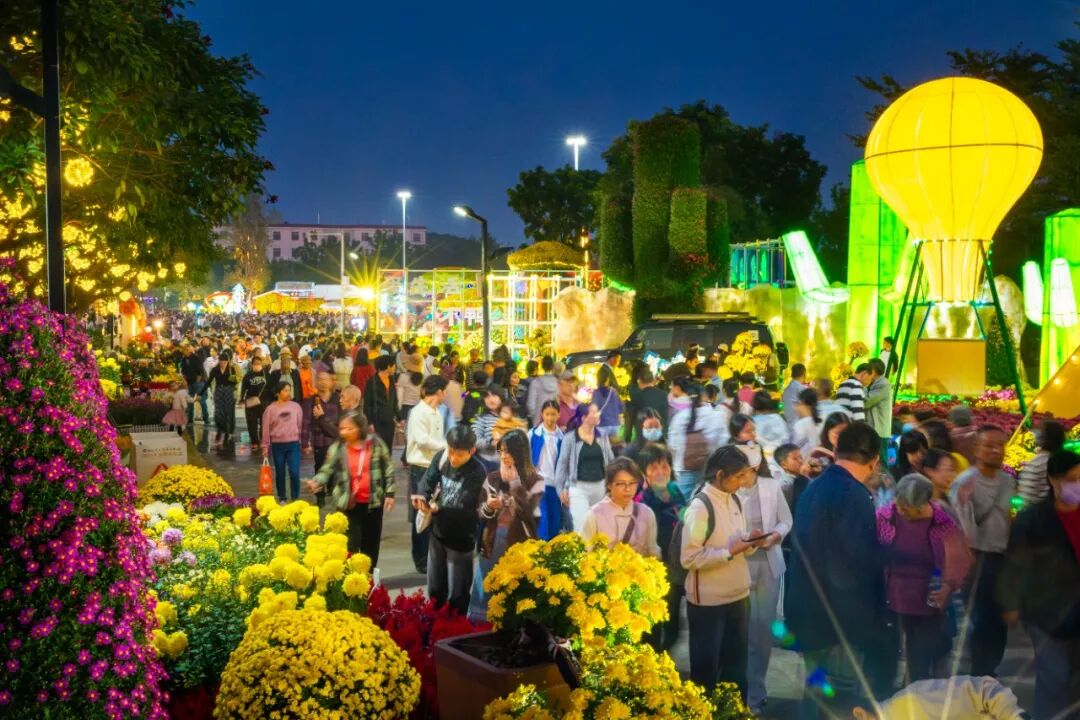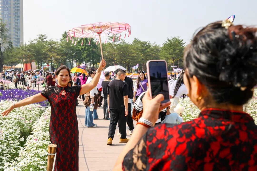 本届菊花会以“潮起湾区 花香菊城”为主题,创新构建“未来—现代—远古”时空叙事线,设置菊艺造景、名菊荟萃、花海、美食等八大区域。目前,盛会已进入最佳赏花观赏期,25组精湛菊艺造景与近20处互动打卡花境错落藏于花海之中,30万盆菊花竞相绽放、千姿百态,为市民游客带来沉浸式的赏菊体验。