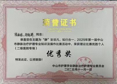 而在静脉治疗护理专科理论竞赛环节,郑超群、陈淑珍两位护理人员同样表现出色。她们凭借对静脉治疗相关专业知识的深度理解与系统掌握,从容应对各类难题。无论是精准解读最新静脉治疗指南,还是灵活运用并发症防治、药物配伍禁忌等知识,她们都展现出了扎实的理论功底。最终,两人双双获评理论竞赛优秀奖,为医院护理团队再添荣誉。