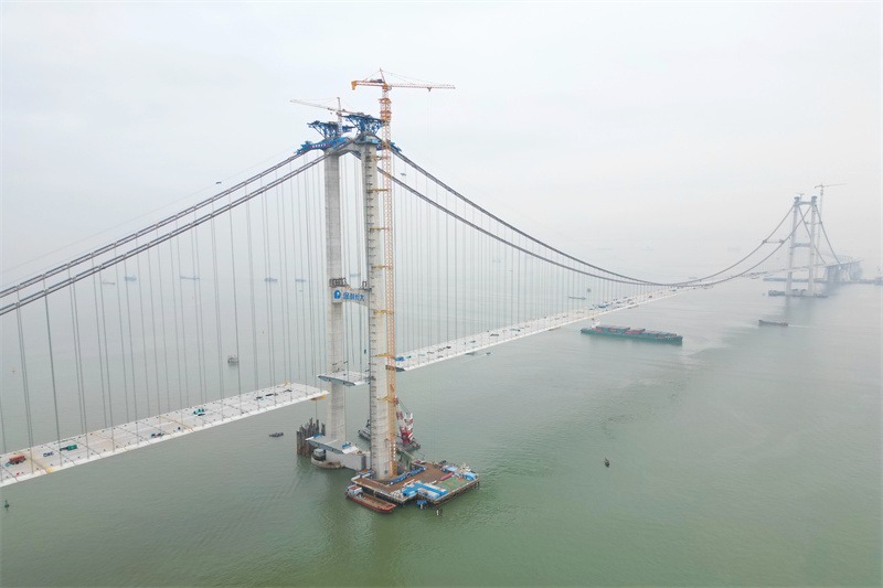 “目前伶仃洋大桥钢箱梁吊装施工仍在紧张进行中,朝着合龙的建设目标前进。”深中通道S05标施工(段)主管王小槐表示,现阶段伶仃洋大桥钢箱梁吊装施工正以每天两片的速度推进,待实现全桥合龙后,下一步将实施主缆缠丝、锚碇顶板和塔顶鞍罩施工等作业,最终完成大桥主体结构施工。