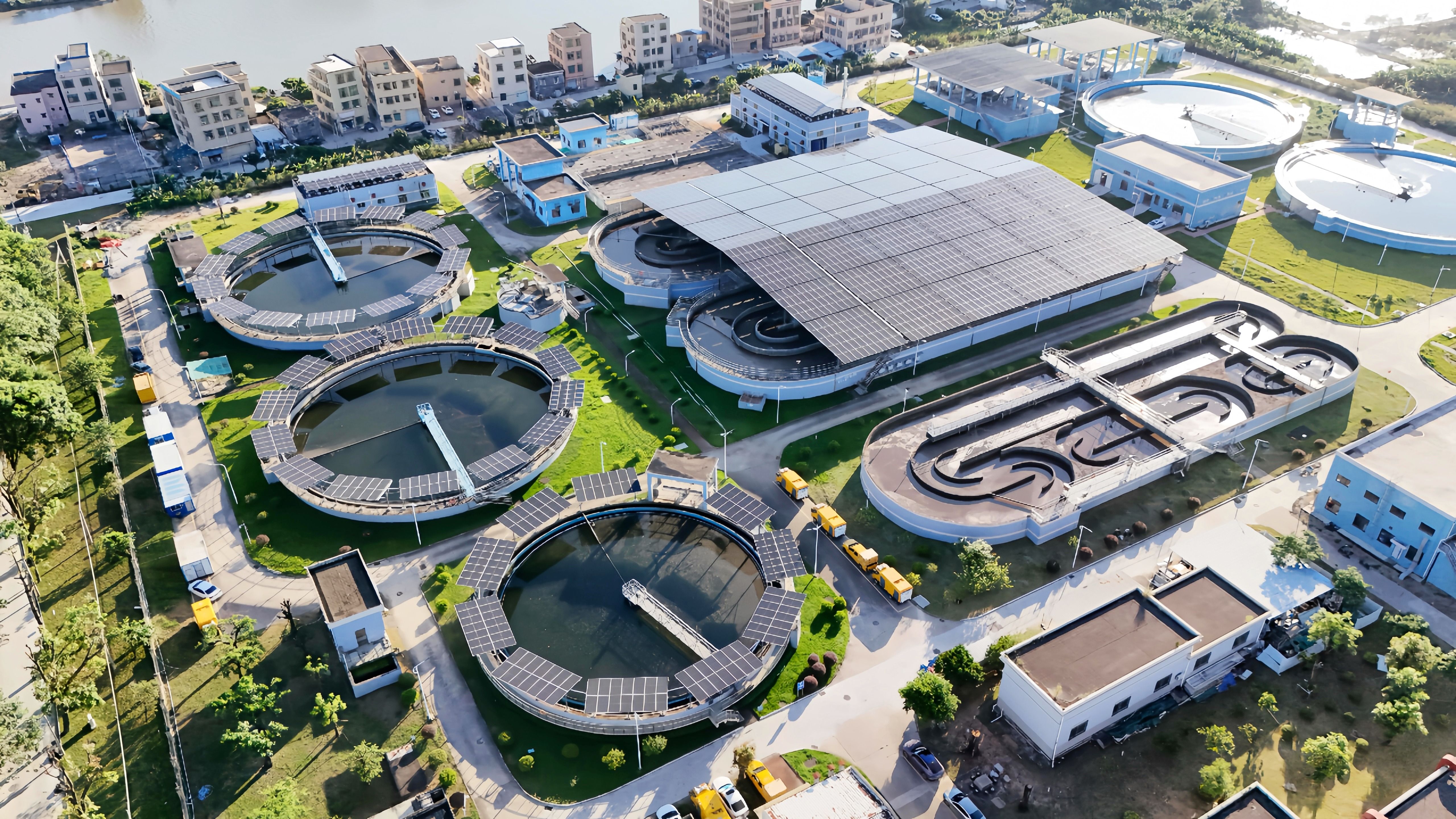 在满负荷运行的污水处理厂内“架梁盖瓦”,无异于“瓷器店里做道场”。池体结构复杂、工艺要求严苛、季节性天气影响等,无一不是严峻挑战。其中,如何在不影响水质处理、确保绝对安全的前提下,实现光伏设施与既有工艺的完美融合,成为项目成败的关键。