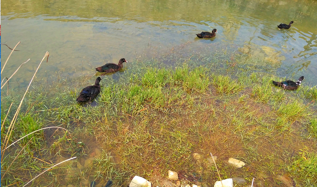 沿岸风景如画,“一折青山一扇屏,一湾清水一条琴。”河田畔一边围建着长长栏栅,一边是树木丛生,百草丰茂的崇山峻岭,河夹岸绿树绕堤,树花鲜美;流水激石,泠泠作响,欢唱流进深山幽谷;清澈见底,游魚细石直视无碍,三三两两的白鹭在浅浅的水上寻觅小鱼虾,还有一群水鸭在河道上嬉戏,惹得河水都跳飞起来,水舞散花,情趣生动。