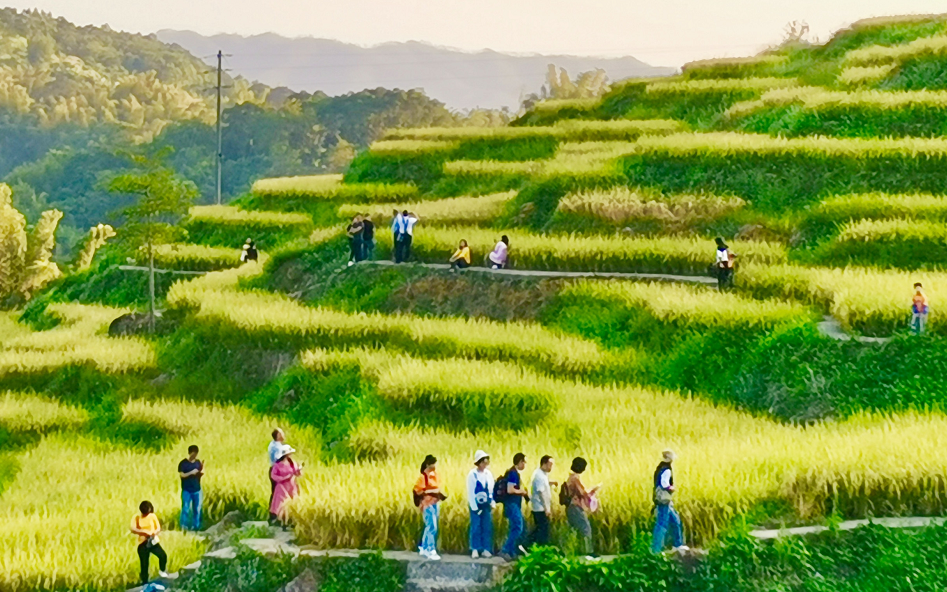 确实,这次来陆河,与河湖相见,目光所见,每一条河每一个湖都给我明亮的感觉,见证了近几年来,陆河政府及市水务部门贯彻落实习近平生态文明思想,全面实施河长制湖长制和中小河流治理的丰硕成果。比如,修建在山坳的南告水库,秋水与长天一色,盈盈一水,柔情依依,风摇晃洒去水面的阳光,波光粼粼,泛漾纯净的诱惑力,澄碧的湖水躺山坳里就似玉盘里一颗青螺,又似闪动着明亮的眼波,凝视着这秋天山野绿树青草的秀色;南万镇万全溪水清岸绿、鱼翔浅底,人走进溪水,鱼儿触手可及;洋岭梯田的小河,水草丰美,悠然的流水、浅绿的水色泛动着夕阳的光芒。在深秋的时节,目光随着流水可见一畦一畦、一片片翻滚青黄色浪涛的梯田,感受宋人所描写的““稻花香里说丰年,听取蛙声一片”的情景,身心就像置一幅墨清爽朗浓淡适宜的水墨画中,仿佛诗和远方就在眼前,有着不可说的清丽和惬意呀。