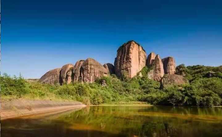 东江水像一条绿色的玉带,静静飘在丹崖之间。两岸石壁耸立,苍鹰盘旋。当年,翠江是中原人过岭南的水中交通要道。秦始皇派驻南岭修驿道的军队从这经过。项羽流放义帝于郴,派英布追杀义帝,无不经此水路。韩愈六过郴州,六次坐船经过翠江。有次,因洪水受阻,舍舟登岸,在摩崖刻石“昌黎经此”。徐霞客更是称赞此处无寸土不丽,是人间仙境。
