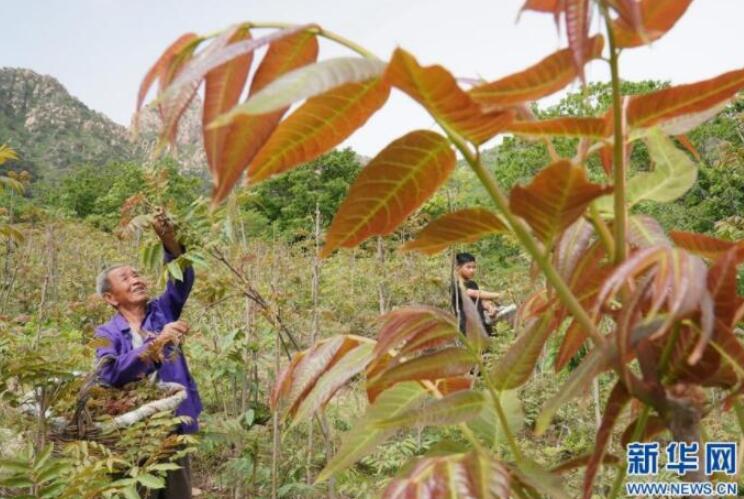 每当到了嫩芽长出梗的时候,母亲就会拿着竹杆站到椿树下,朝着枝桠上的香椿叶的尾端,一钩一拉,只见一声清响,应声而落,一簇香椿就落在树下早已铺开的塑料布上。飘落的过程,像羽毛球飘飘而下。如此反复,打够一家人够吃的菜为止。如果此时有乡里乡亲在树下围观,母亲就会多打一些,让他们带一些回去。打香椿是件苦差事,一根长长的竹杆颤颤巍巍要举半个多小时,才能打足一餐的香椿菜。但即使这样,母亲也是乐此不疲。