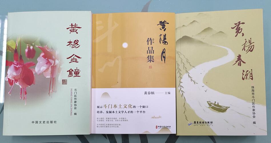 斗门区作家协会为弘扬和宣传本土文化,在斗门区委宣传部、区文联、区文产办的支持下,精心组织骨干会员,深入基层,挖掘历史遗迹、乡村振兴、生态建设、非遗文化、美食文化等第一手素材,分别创作并于近日出版了《黄杨金钟》、《黄杨月作品集》、《黄杨春潮》三部文集,被誉为“三响炮”。