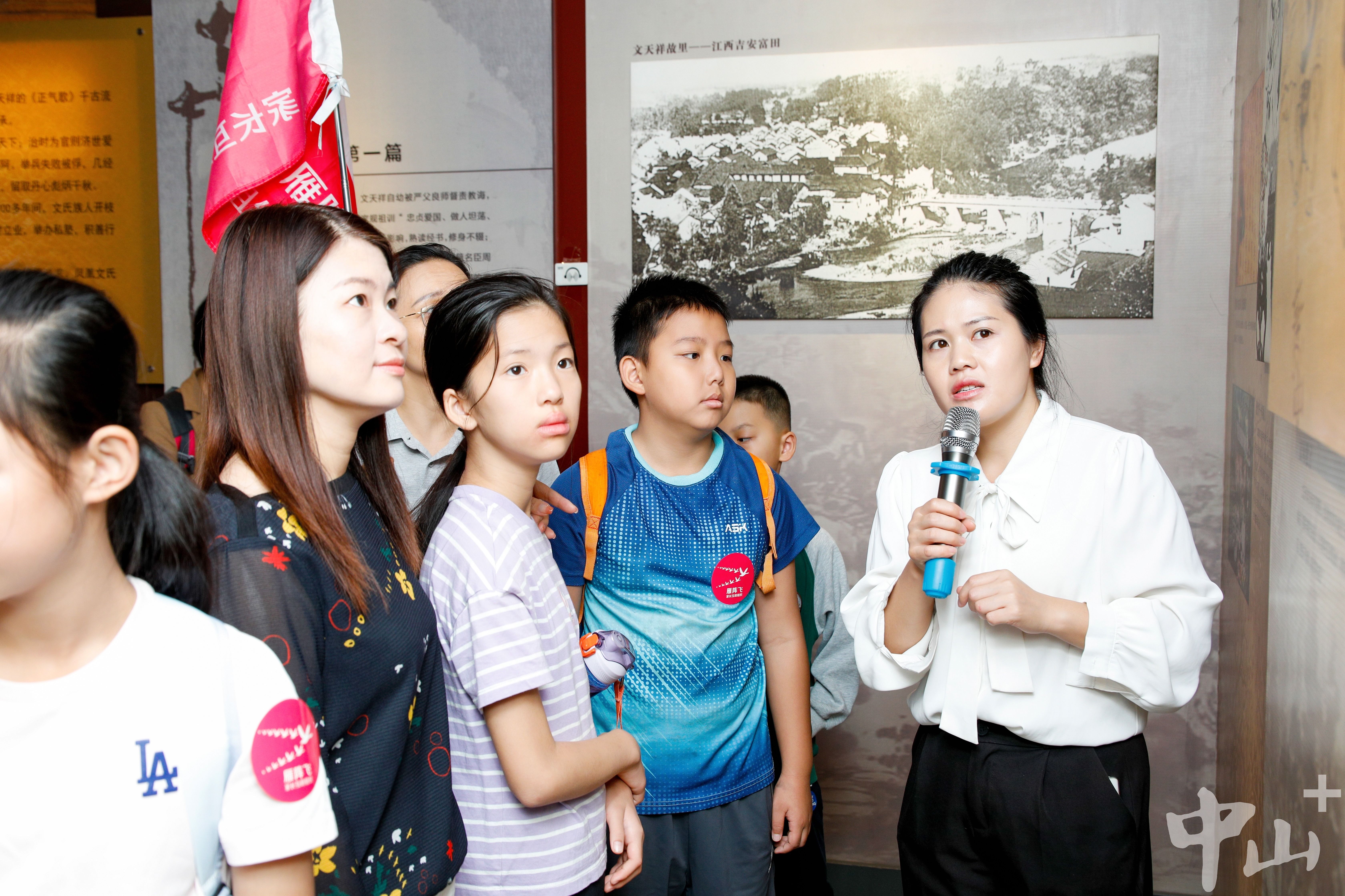 研学第一站,亲子家庭来到深圳市文天祥纪念馆,在讲解员的讲解下,了解文天祥的英雄事迹,聆听其坚韧不拔、忠义报国的家风故事。“妈妈,长大后我也要像文天祥一样报效国家,你会支持我吗?”年龄最小的“小雏雁”伊伊用用稚嫩而坚定的声音对妈妈说。
