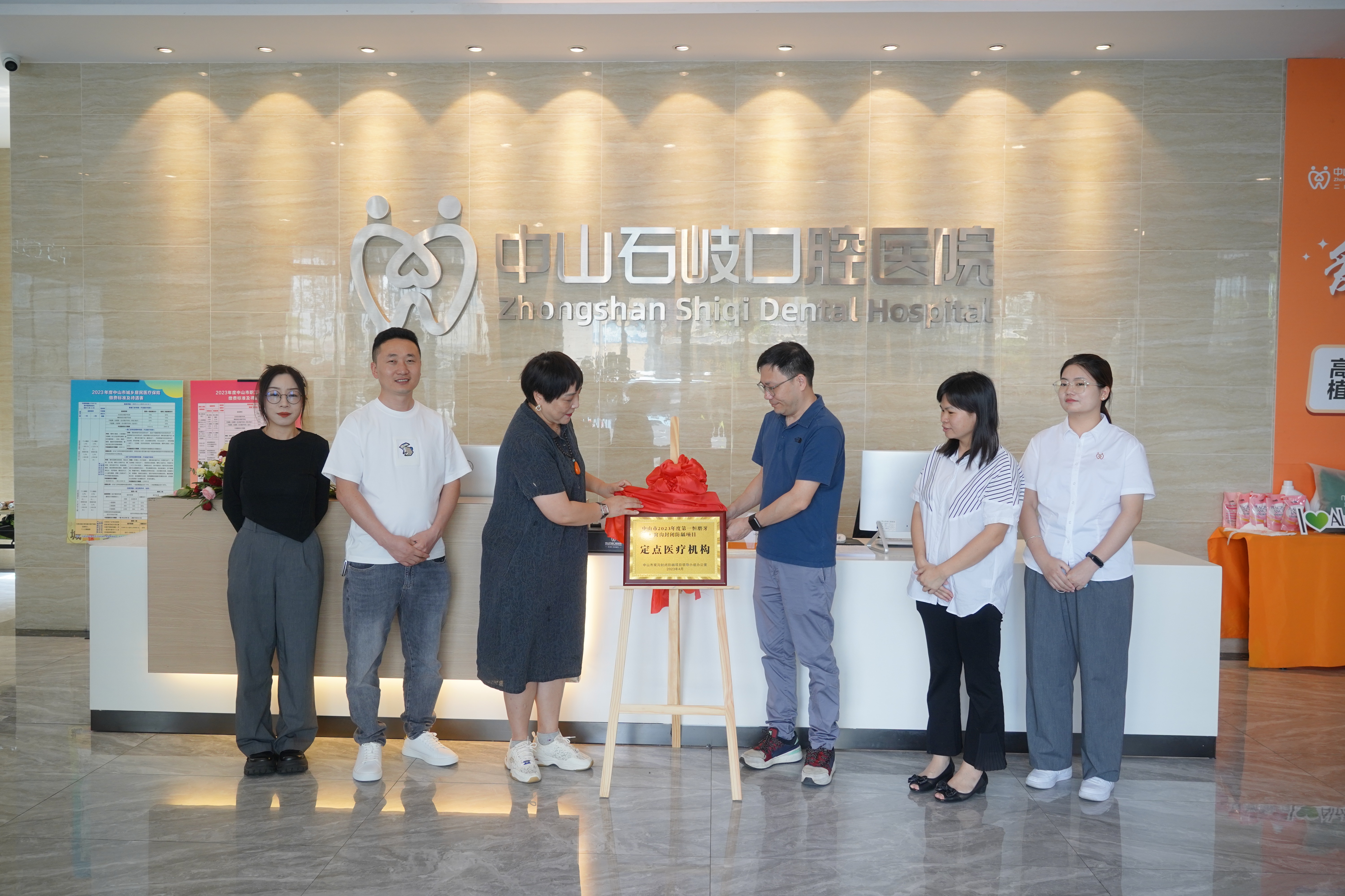 5月30日上午,石岐街道卫计局为中山石岐口腔医院授牌“中山市2023年度第一恒磨牙窝沟封闭防龋项目定点医疗机构”。