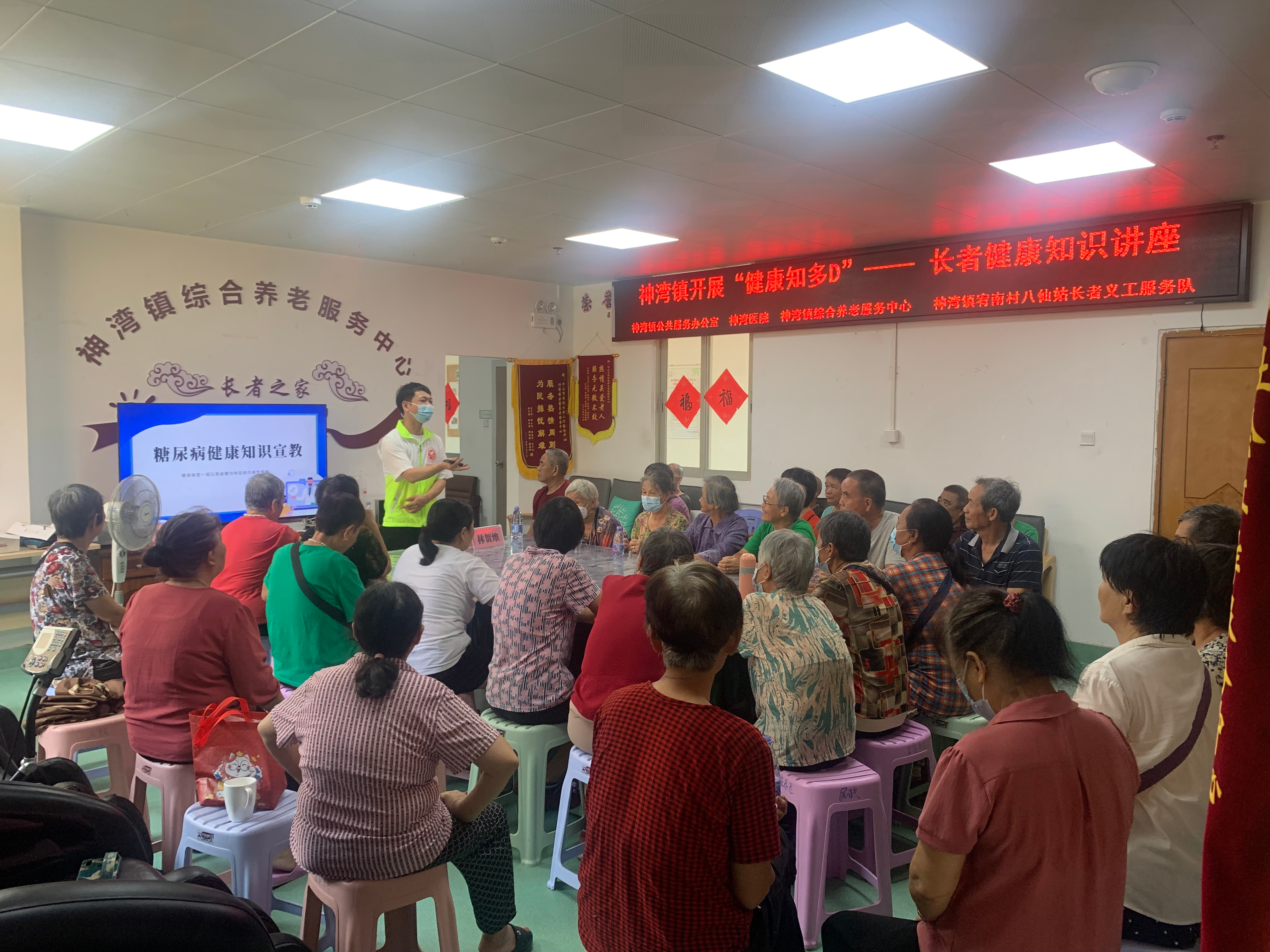 7月7,神湾镇综合养老服务中心联合神湾医院举办“健康知多D”—— 健康饮食知识讲座,活动吸引了辖区40多名老年人参与。活动现场,医护团队还为老年人提供血糖、血压检测、健康咨询等义诊服务。