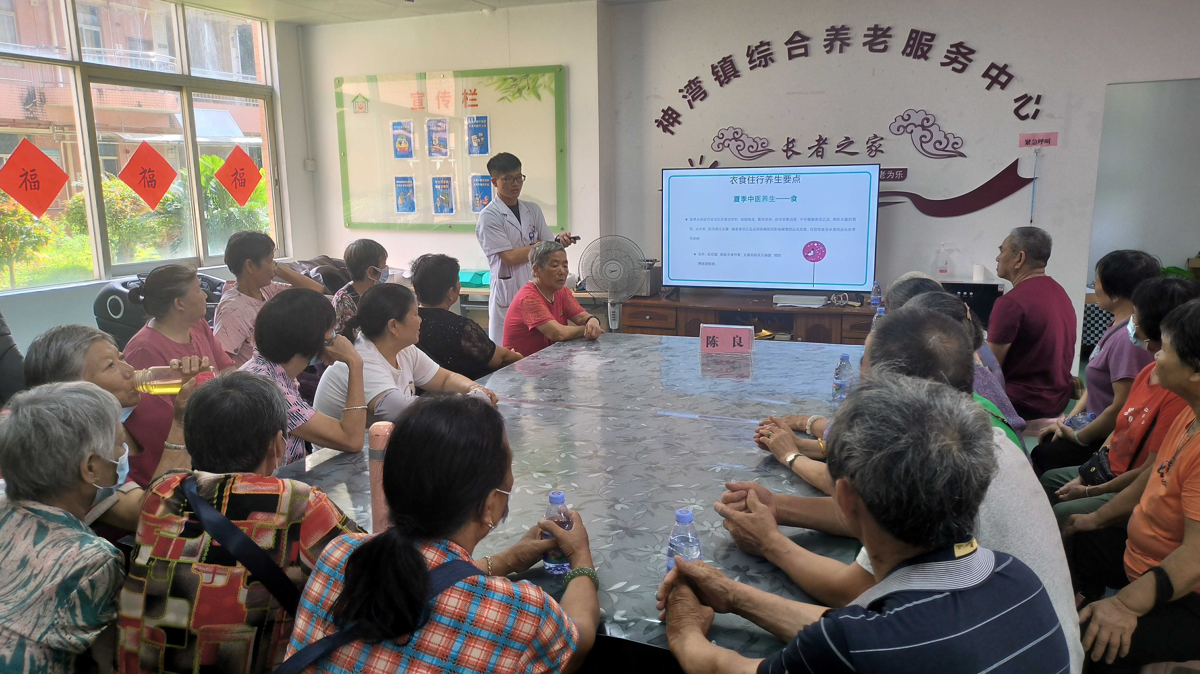讲座上,神湾医院医生陈良将中医养生保健知识与老年人实际生活相结合,重点阐述夏季饮食养生的重要性,介绍了一些夏季时令食物的养生功效,如西瓜可以除烦止渴、清热解暑,苦瓜味甘苦性寒,能除热邪、解劳乏、清心明目。“老年人夏季多吃苦瓜,可以开胃促进消化。”