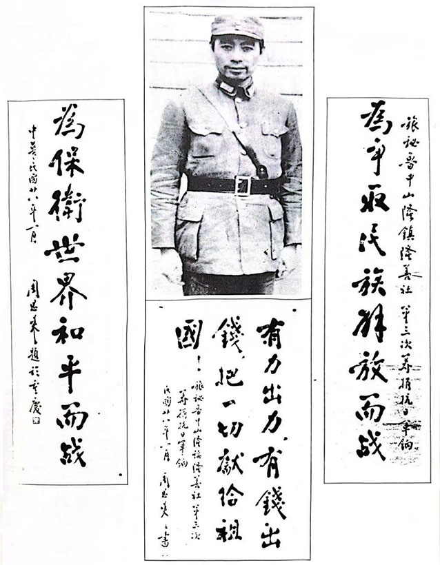 感佩于秘鲁侨胞们的义举,国共两党政要、将领和文人雅士纷纷赠送墨宝,表彰他们对抗战的贡献。这些题词并非用于商业拍卖,而是用于筹集资金捐款。1939年,秘鲁中山隆镇隆善社收到来自重庆等地的200余幅书画作品。周恩来的题词“万里之外秘鲁侨胞统筹债捐达二百万秘币,是侨胞之模范,是抗战之光荣”,高度肯定了秘鲁侨胞在抗日战场上发挥的举足轻重作用。收到这批作品后,中山隆镇隆善社又以义卖形式,在秘鲁开展了第三次筹款。