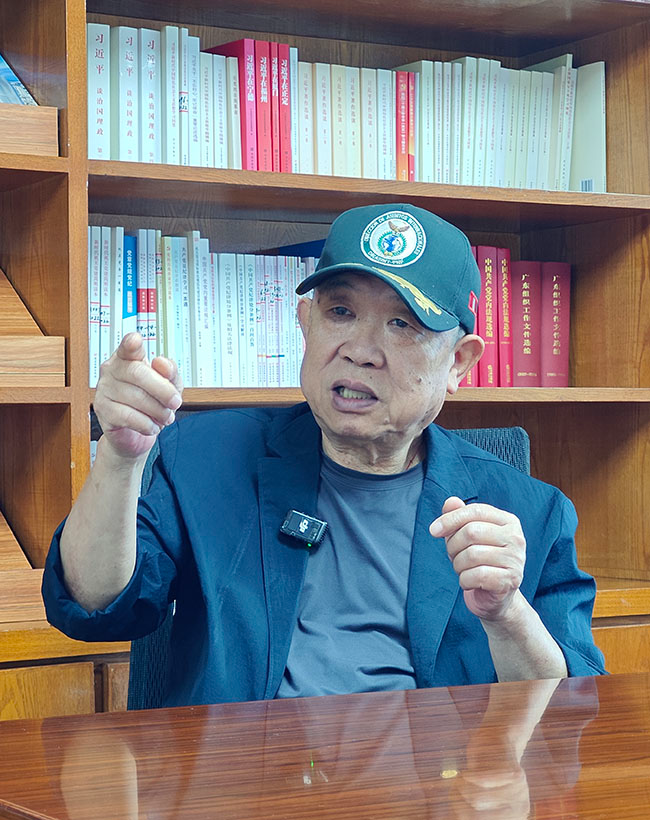 75岁的秘鲁中华通惠总局名誉主席萧孝权展示了自己收集的秘鲁华侨华人抗战史料,并讲述自己数十年来发掘和守护秘鲁华侨抗日故事的经历。(摄影丨易承乐)
