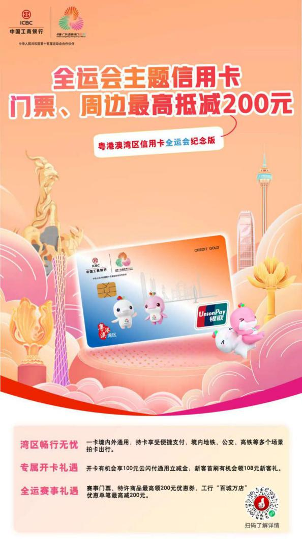 与此同时,自9月起,中山工行结合赛事购票等消费场景,启动“激情全运会 消费享优惠”主题优惠促销活动,打造多维度消费场景与友好型用卡体验,发挥金融提振消费作用,让市民更便捷实惠参与盛事,感受体育魅力。