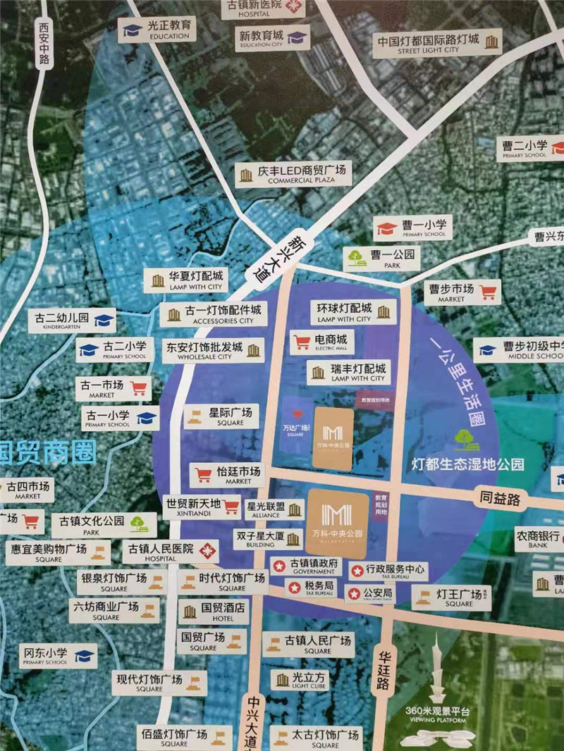 上世纪80年代,古镇开启“提灯走天下”的致富之路,书写“这里的世界最明亮”的辉煌,赢得“中国灯饰之都”的美誉。拥有年产值超千亿元的灯饰产业集群,是世界灯饰贸易要地。古镇南作为古镇镇中心,如今有中山产业平台(古镇园)、广珠城轨古镇站、TOD综合开发中心等重点规划,资源集聚效应加剧。