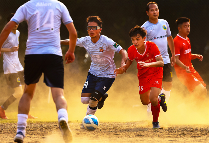 近年来,中山掀起了一股足球运动热潮,足球场上频现精彩瞬间。图为中山市“三好杯”足球邀请赛比赛现场。(摄影:简建文)