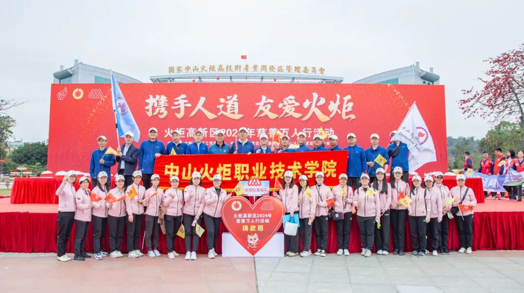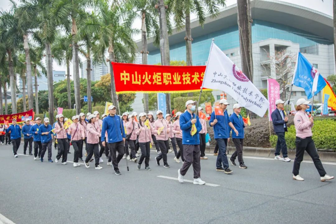 “慈善万人行,万人行慈善”,伴随着振奋人心的乐曲,学校教职工代表意气昂扬,精神饱满,脸上洋溢着幸福的笑容步入活动现场。他们身穿整齐的服装,高举“中山火炬职业技术学院”的横幅,挥舞着校徽大旗,微笑向道路两边的群众挥手致意,路过主席台时,他们昂首挺胸,大步向前,充分展示了学校教职工饱满的精神面貌与向上的团队精神。