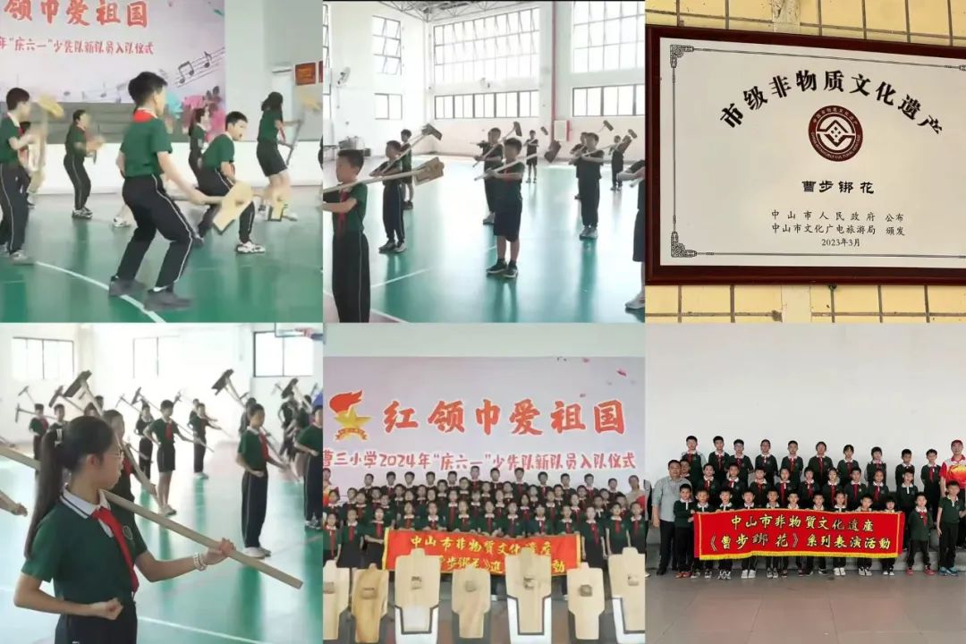 曹三小学作为曹步䦁花校园非遗传承基地,积极组织传承人进校教学,鼓励学生们学习并传承家乡优秀传统文化。曹一小学则通过开展“曹步周家拳”非遗文化项目进校园推广活动,将武术精神与传统文化相结合,为学生们提供了更多接触和了解非遗文化的机会。这些活动不仅增强了学生们的非物质文化遗产传承意识,更为他们未来的成长之路点亮了一盏明灯。