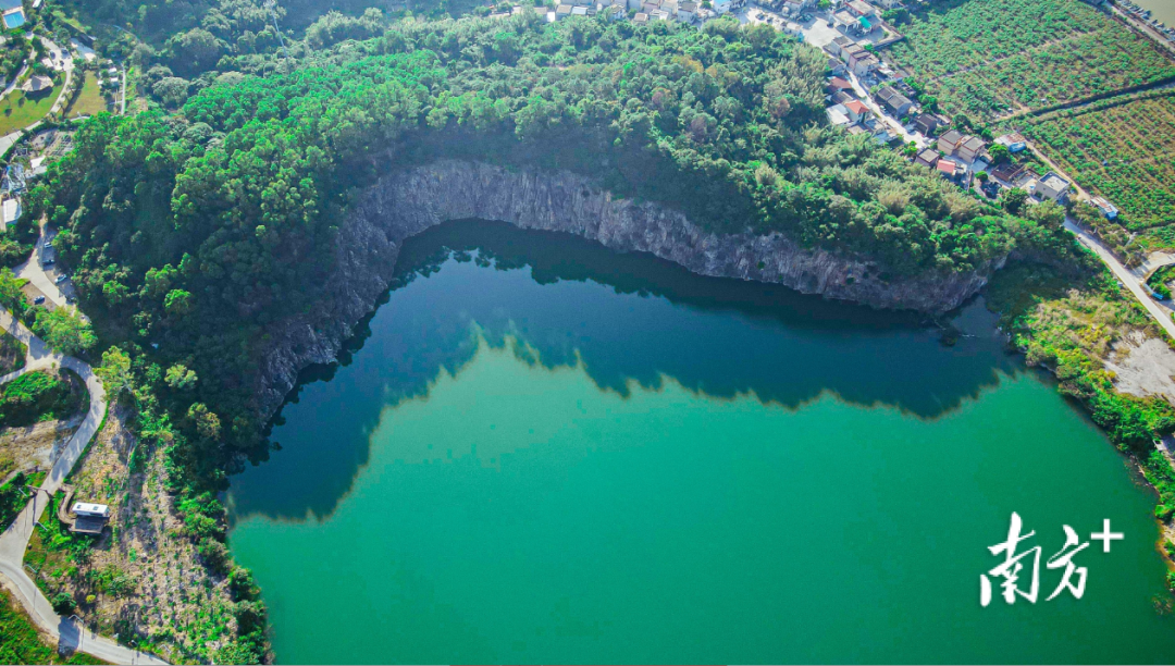 这里原本是“硫角山”。20世纪60年代起,冲口村集中建起一批采石场。“40余年的开采,导致山体逐渐凹陷,成了如今的‘大矿坑’‘小矿坑’。日复一日,年复一年,自然降水和地下水逐渐汇聚,最终形成了这两个矿坑湖。”冲口村党总支书记梁婉萍介绍。