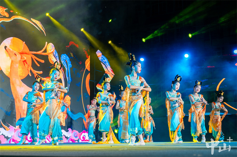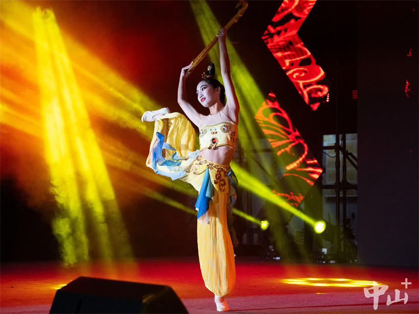 晚会由中山市文化广电旅游局指导,中山市文化馆中心馆与板芙镇宣传文化服务中心(板芙分馆)联合主办,中山市乡村艺术委员会、中山市大盛陶艺共享文化馆承办,汇聚全市20余家社会组织的优质资源,19个精心编排的节目涵盖舞蹈、合唱、声乐、器乐、曲艺等多种艺术形式,尽显中山群众文化的丰硕成果。随着欢快的旋律响起,中山市文化馆群星艺术团青年舞蹈团带来的广场舞《彩云追月》率先登场,这支曾斩获全国广场舞展演“优秀团队”奖、在第二十五届群星奖广场舞终评中广受赞誉的作品,以灵动舞姿拉开了晚会序幕。舞蹈《丝路敦煌》取材敦煌莫高窟壁画,用舒展的肢体语言再现千年丝路的繁华盛景。