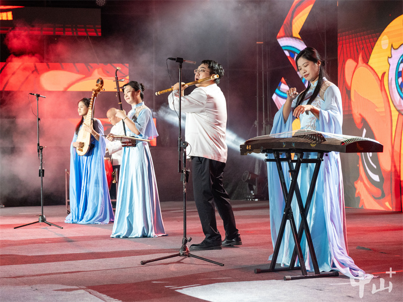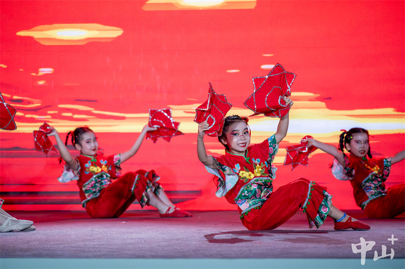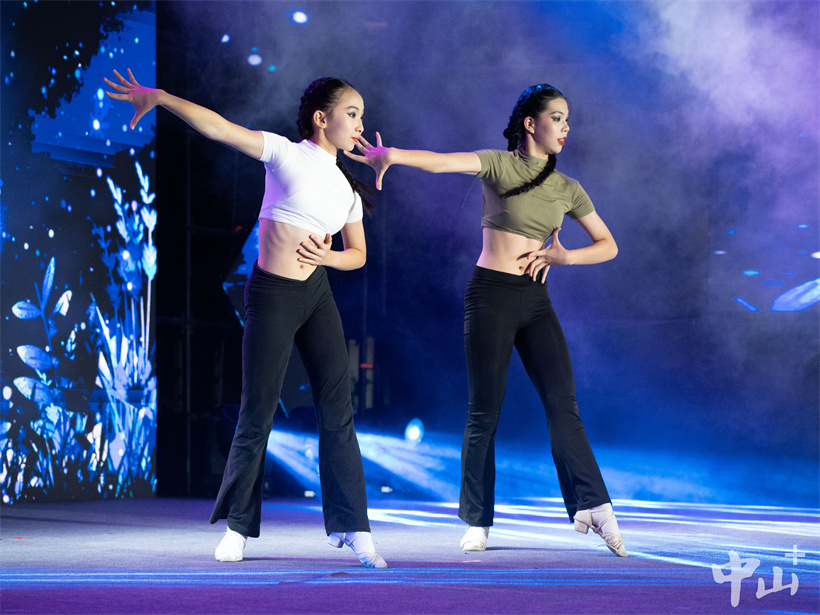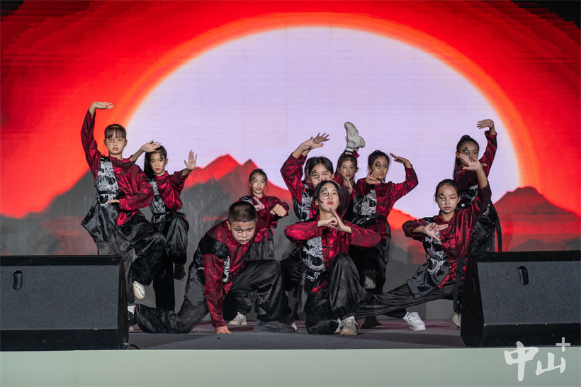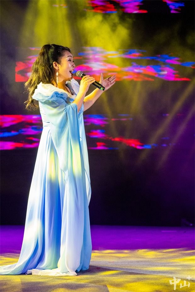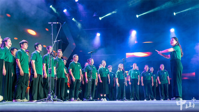 声乐与器乐表演同样亮点纷呈。中山市文化馆声乐专干黄学斌的男声独唱《雨霖铃·秋别》婉转悠扬,“香山之子”组合带来《弯弯的月亮》《我的一切属于祖国》,用醇厚和声传递家国情怀,女声独唱《玛依拉变奏曲》以清亮嗓音征服全场。中山民乐团演绎的改编版广东音乐《步步高》节奏明快、振奋人心,古筝合奏《定风波》《小池》则奏响古典韵律,尽显传统器乐的独特魅力。屡获佳绩的中山合唱团献上两首流行改编混声合唱《世界赠予我的》《亲爱的你啊》,以岭南元素融入和声编配的创新形式惊艳亮相,晚会尾声,合唱团联合全体演员共同唱响第十五届全运会会歌《气势如虹》,激昂旋律将现场气氛推向高潮。此外,对口快板《美丽中山焕新颜》、拉丁舞、诗朗诵、街舞等多元节目轮番上演,全方位展现了中山群文创作的蓬勃活力。