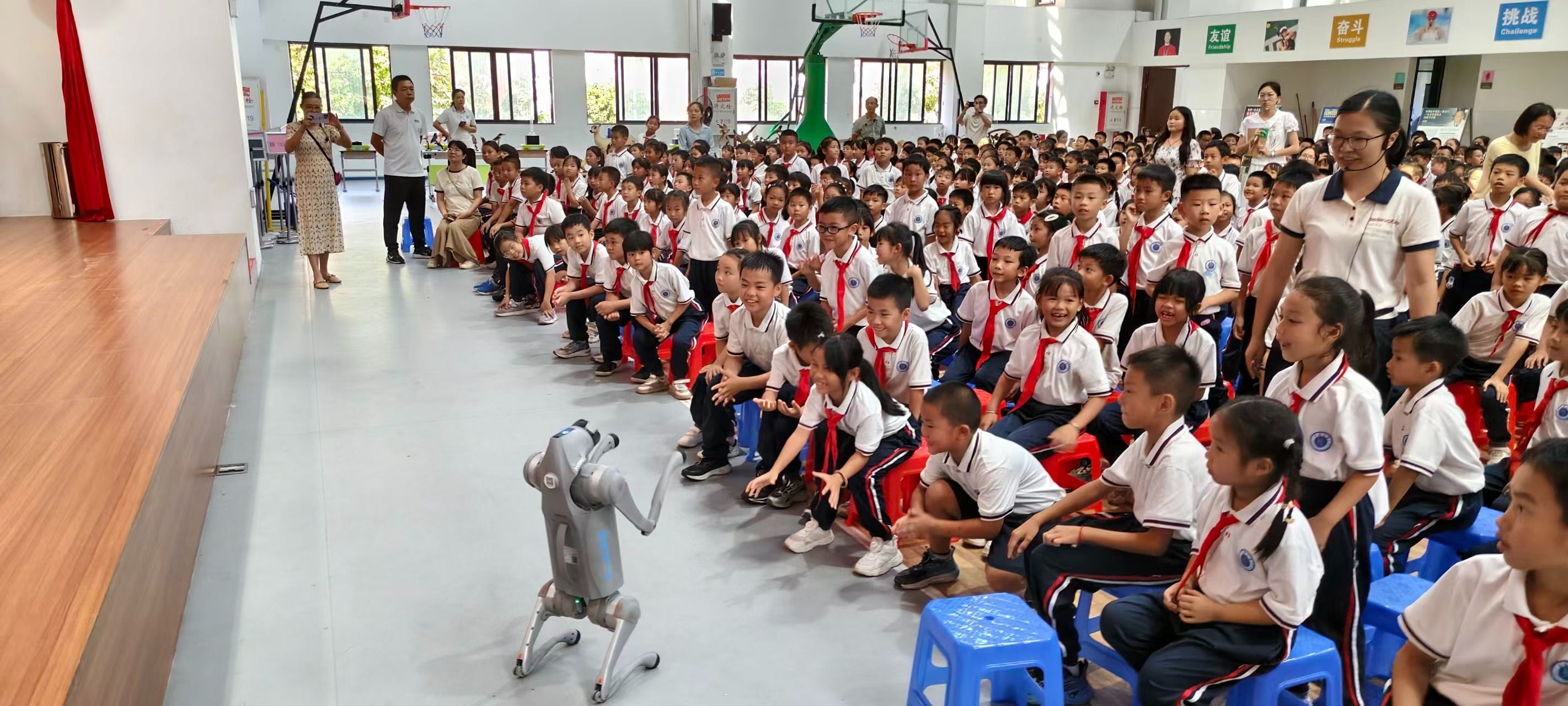 2025年5月起,一支由该校15名学生组成的科创志愿者团队,带着人工智能机械狗、AI下棋机器人等智能展品,深入中山各镇街的校园、社区和乡村,开展为期7个月的科普“六进”服务。他们不仅演示科技产品,更担任起“科普讲师”,让深奥的AI知识变得生动可触。截至目前,科创志愿者团队累计走进48个单位,服务超4000名师生,志愿服务时长突破800小时。