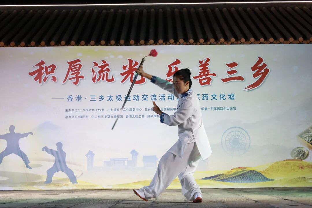 11月22日晚,恰逢小雪节气,三乡镇雍陌村艺术广场灯火通明、人流如织,“积厚流光 乐善三乡”香港·三乡太极运动交流活动暨中医药文化墟在此热烈举行。活动融汇太极展演与中医药文化体验,为市民呈现了一场兼具观赏性、互动性与实用性的传统文化盛宴。