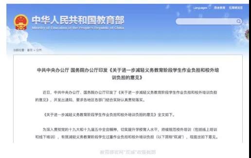 今年7月份,教育部官网公布《关于进一步减轻义务教育阶段学生作业负担和校外培训负担的意见》(以下简称《意见》)文件,正式宣告“双减”政策落地。一系列强而有力的学生教育减负政策,不但“重锤”传统应试类学科校外培训机构,同时也进一步强调强化学校主阵地作用,让学生学习更好回归校园。