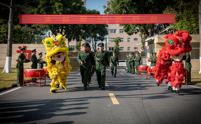 12月30日下午,武警中山支队迎来新战士,支队组织全体官兵早早守候在道路两旁,满怀热情地迎接新战士。