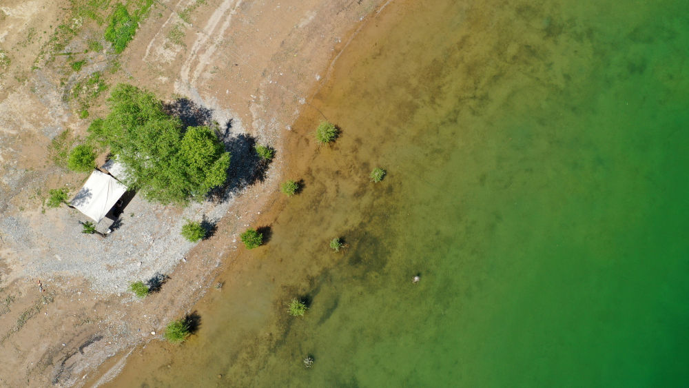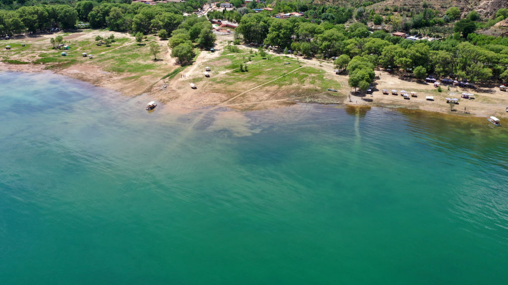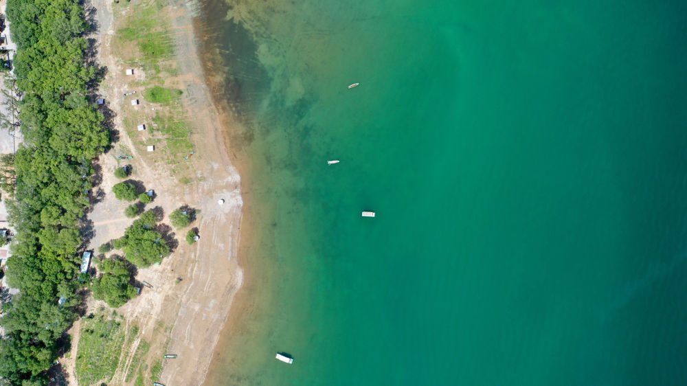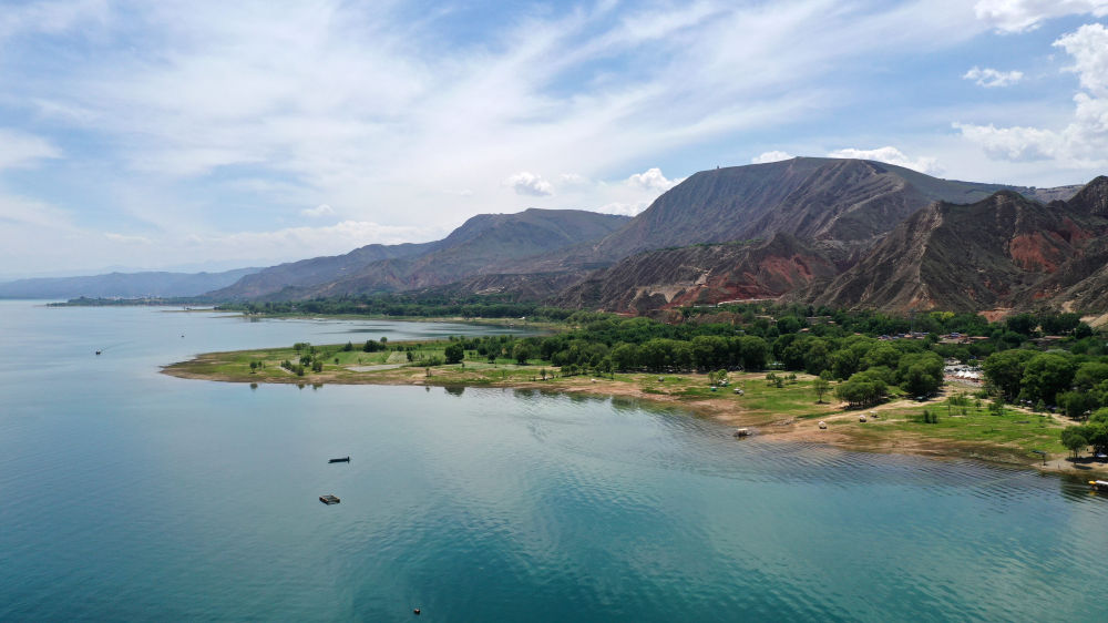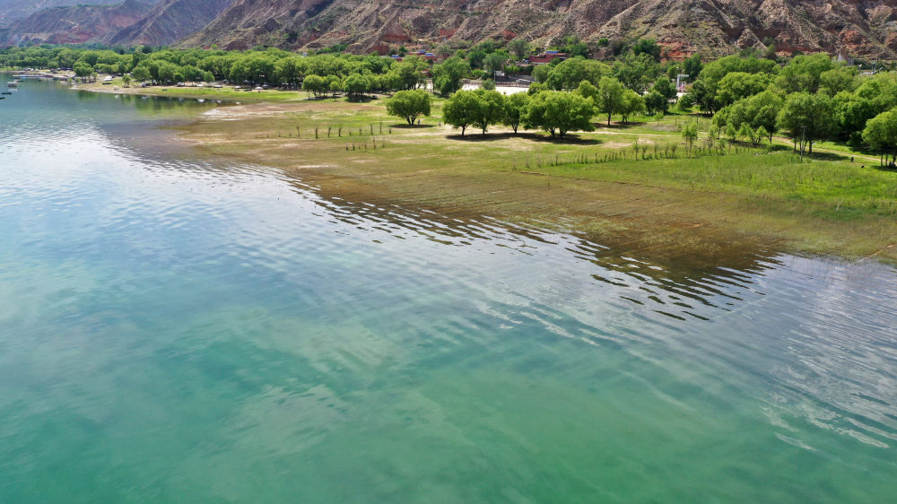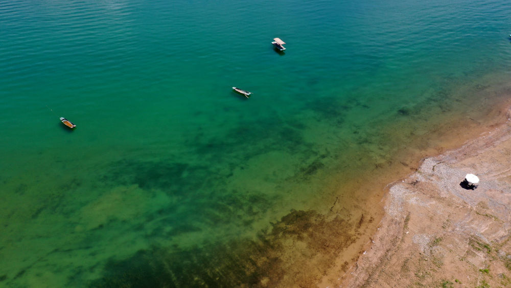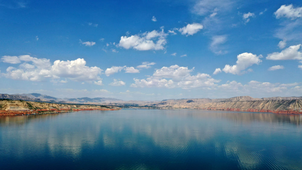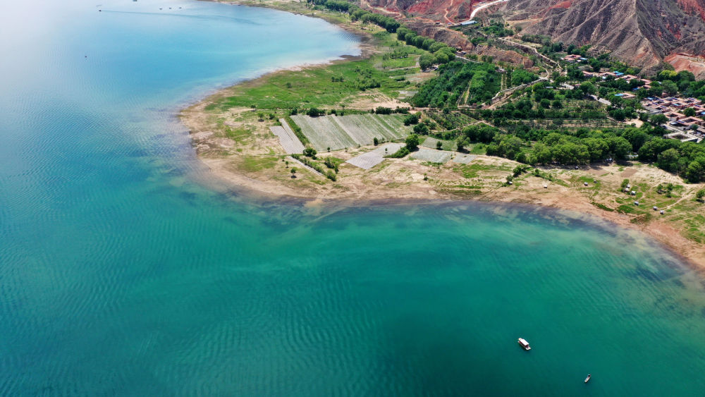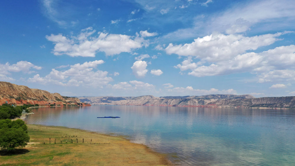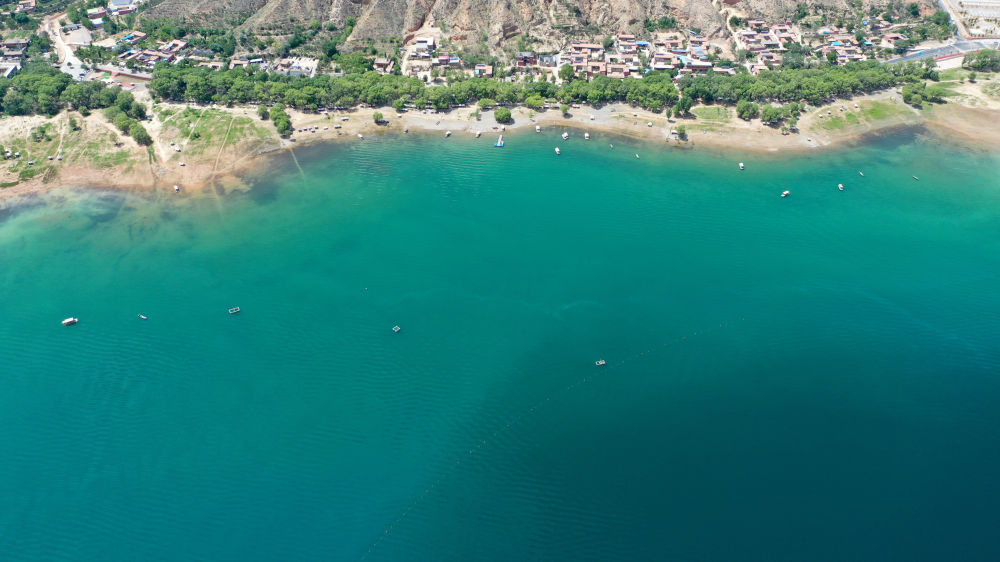 位于甘肃省临夏回族自治州永靖县境内刘家峡水库的黄河三湾碧波荡漾、岸线蜿蜒,片片小舟在水面摇曳,呈现一幅夏日清新画卷。新华社记者 陈斌 摄影报道