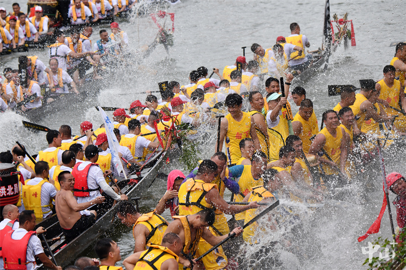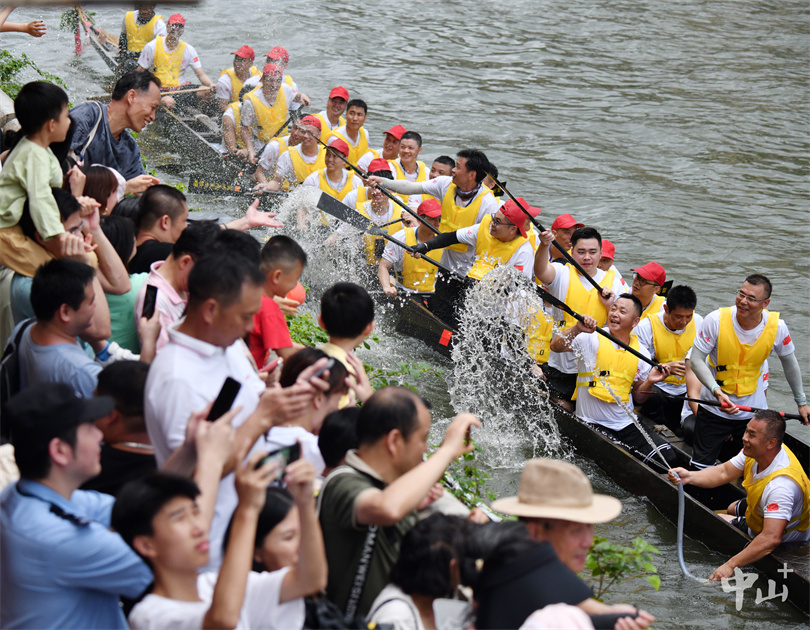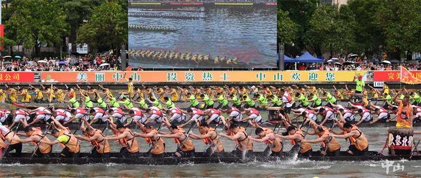 6月10日,端午佳节,2024年粤港澳大湾区(中山)龙舟邀请赛鸣锣开赛,来自粤港澳大湾区城市群12个城市的37支队伍齐聚岐江河,演绎水上“速度与激情”。