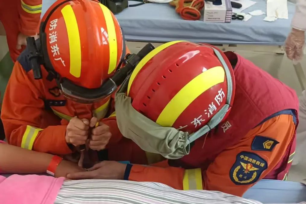 2025年2月9日上午11时,南朗大队接到警情,称中山市第三人民医院一名女病人戒指卡手需要救援,翠亨新区第一专职队接到警情后立即出动前往处置。