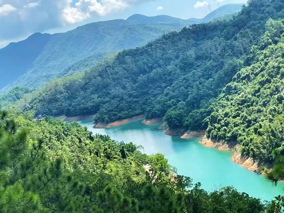 郊野步道穿林绕溪,百米瀑布藏于深山,客家村落与水库碧波相映成趣。