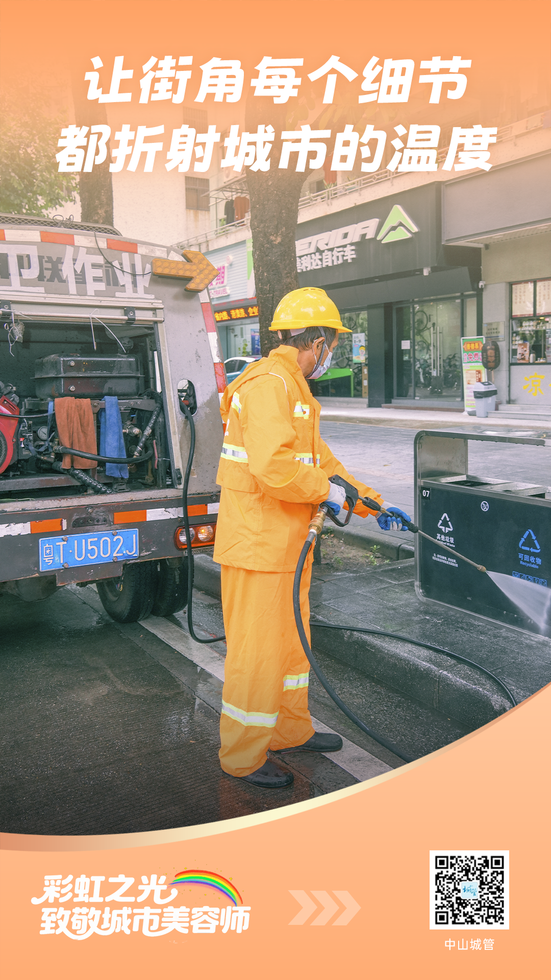 有人说,他们是冲洗垃圾桶的人。但我们知道,他们洗去的,不仅是污渍,更是城市的尘埃与阴霾,还我们一个体面而光鲜的“会客厅”。那飞溅的水花,是城市最美的喷泉。