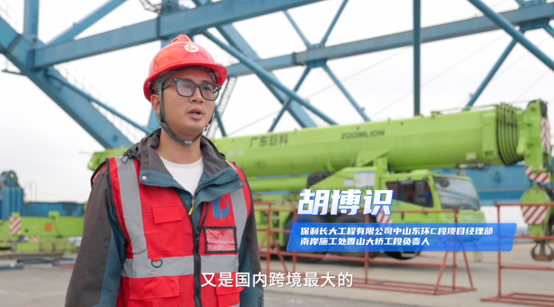 “香山大桥作为本项目的控制性工程,集超大跨径、超宽桥面、超高索塔、超重荷载、超大索力于一体,每项都是对技术的挑战。”中山东环高速公路有限公司工程部副经理李剑表示,针对这些复杂技术挑战,项目团队制定周密应对方案,决定采用QMD1500t桥面吊机吊装香山大桥双层钢桁梁。该桥面吊机总体尺寸大,自重930吨,额定起升重量达1500吨,具有变幅调节范围大、液压调节对接精度高、液压连续提升稳定性好等优点,是国内采用钢绞线液压系统连续提升的最大吨位桥面吊机。“目前已成功采用此桥面吊机完成全部中跨节段吊装。”李剑说道。