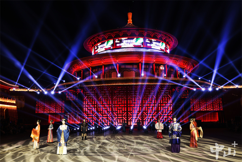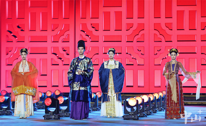 “现代秀”环节以流行歌手助唱点燃现场氛围。巨型大屏幕上,“时尚中山”展示服装裁剪万千技艺,另一侧,20家本土服装企业的中山休闲服、牛仔服饰、精致婚纱礼服等特色品类依次亮相,尽展中山时尚产业集群的雄厚实力与潮流底气,让观众近距离感受现代时尚的活力风采。