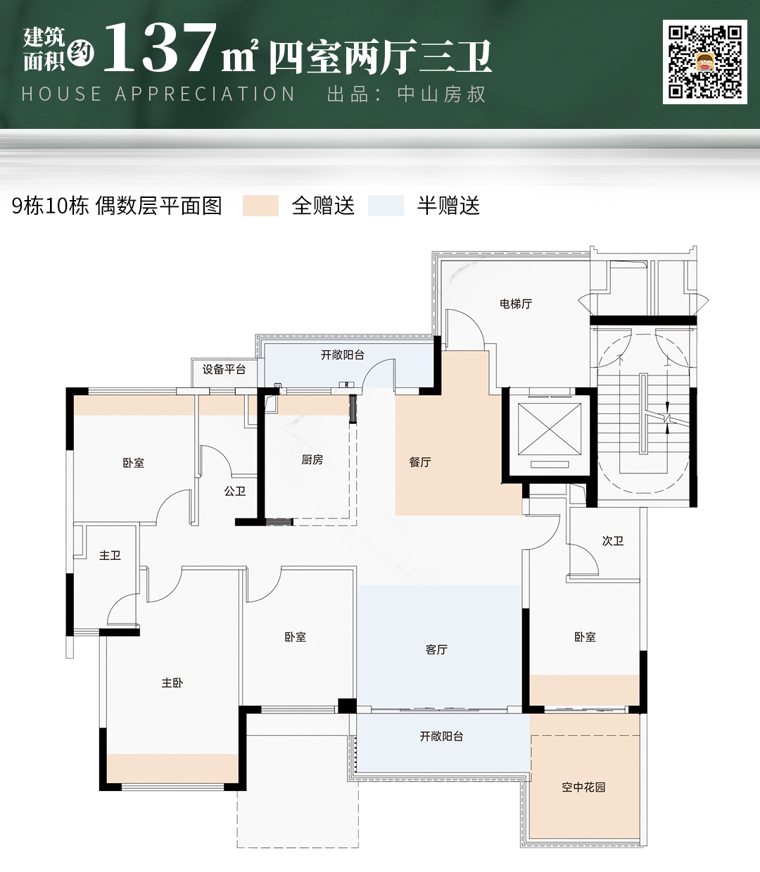 在产品设计上,项目涵盖建面约96-156㎡舒居户型,率先亮相的建面约137、156㎡产品,通过LDKX+G设计、超120%的使用率、户户标配6米挑高空中花园、超阔南向采光面、专梯入户等突破性配置,带来颠覆性居住体验。这不仅满足全龄家庭的多维需求,更实现自然与生活的无界融合,引领小榄人居迈入高效、舒适、生态的新时代。