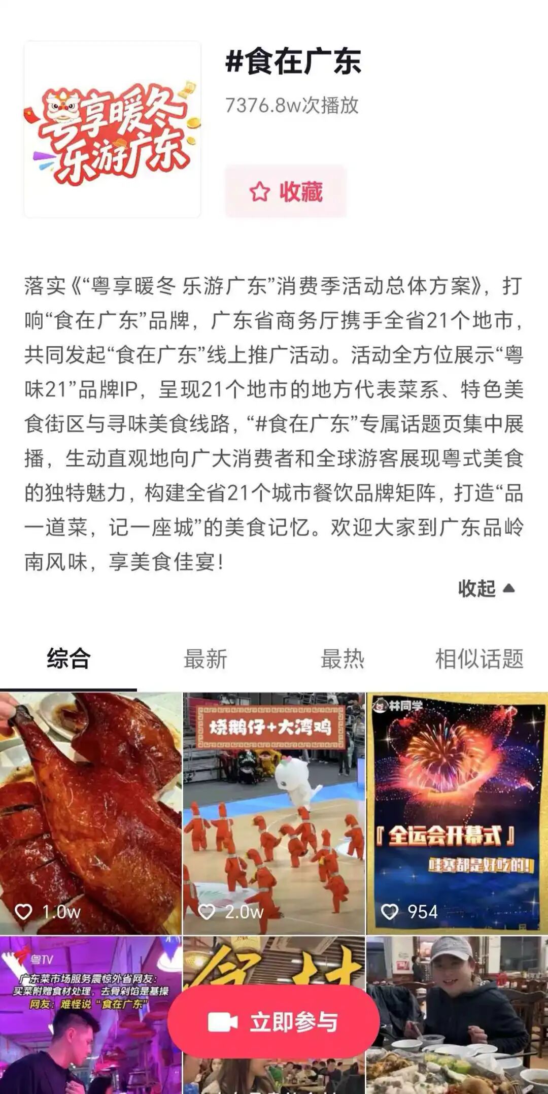 据悉,广东省商务厅正持续深化“食在广东”品牌建设,“广东美食地图”已上线腾讯地图,餐饮消费券发放将持续至明年3月底,各地餐饮商家也推出团购优惠、跨年夜及年夜饭套餐等活动。未来,广东将进一步培育美食集聚区、完善推广体系,让“粤味21”成为推动餐饮消费升级、促进文旅融合发展的重要力量,诚邀海内外朋友探寻地道粤味、品味粤菜精华。