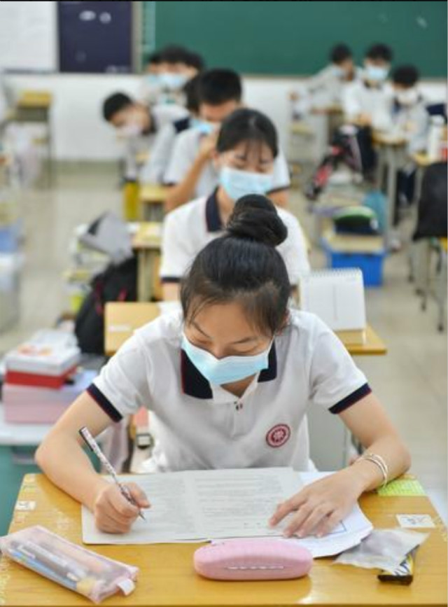 东区中学首批返校高三学生428名,分两批在上午返校。有部分家长无法接送的学生,则乘坐专门的定制公交回校。学生进校门前都要经过一个刷脸机器,同步还有可以测体温的探头。