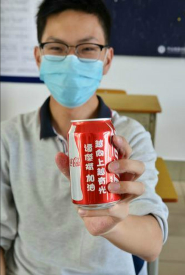进入校园,等待他们的除了许久未见的老师,还有意料之中的熟悉的“礼物”和“意外惊喜”。高三(10)班的同学们一进课室就收到了一份英语试卷,还是那个熟悉的味道。而高三(2)班的班主任张昱则为自己教过高中学生们都定制了专属可乐。每一罐乐罐上都印着同学们的名字,着实让大家惊喜。老家在湖北黄石的她,春节期间因疫情一度滞留在家,她只能在家给学生们上网课。张昱说:“2003年非典的时候,我刚好高考。今年轮到我的学生高考了。定制这批可乐也为了鼓励他们无惧困难。”