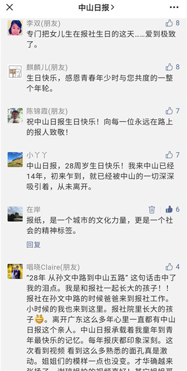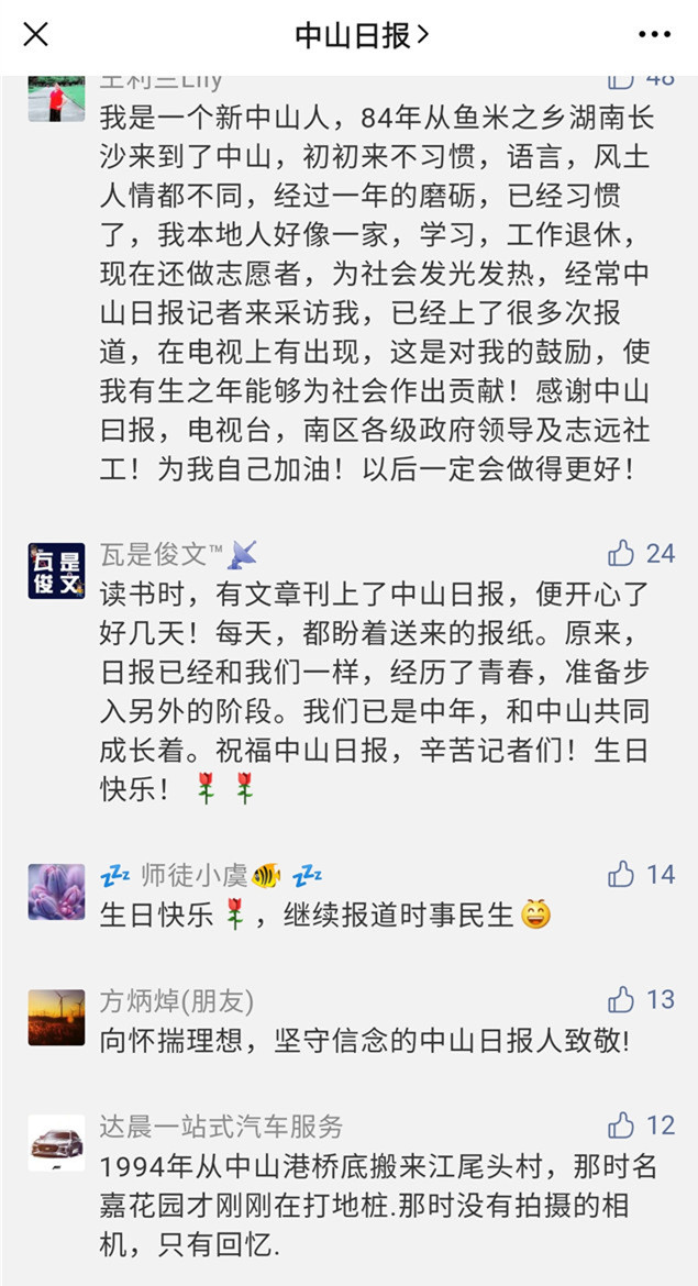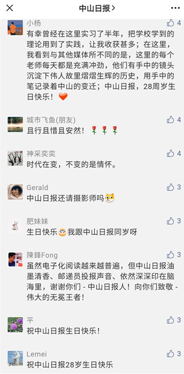 28载,岁月如歌!中山日报的忠实粉丝纷纷留言,为中山日报庆生,讲述自己和中山、中山日报之间的情缘。