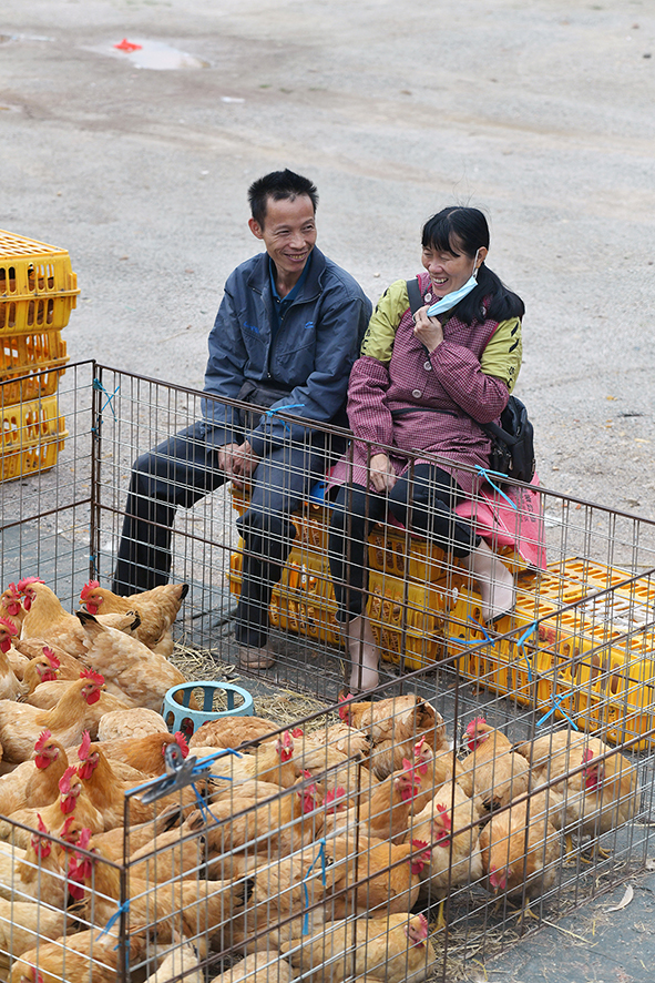 顺天镇市场一角里开心的商贩,游客的到来拉动了土特产的销售。