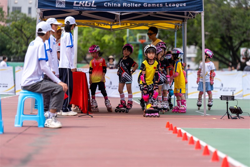 5月28日,2022“轮动冰感”轮滑巡回赛暨中山市青少年轮滑公开赛暨CRGL轮滑联盟大奖赛在中山黄圃体育中心举行,来自中山、珠海、江门等地30多支队伍的300多名选手参加。图为比赛现场。(摄影:黄艺杰)