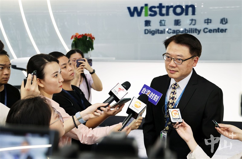 ▲两岸媒体记者采访纬创资通(中山)有限公司副总经理吴俊德。(摄影:文波)