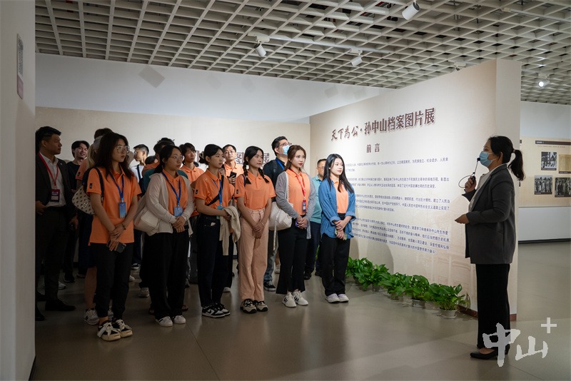 ▲参加孙中山历史文化探寻营活动的青年们在中山市档案馆聆听讲解。(摄影:黄艺杰)