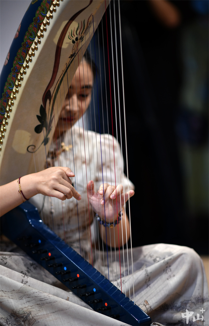 ▲当天现场的箜篌展演吸引了不少箜篌爱好者驻足观看。