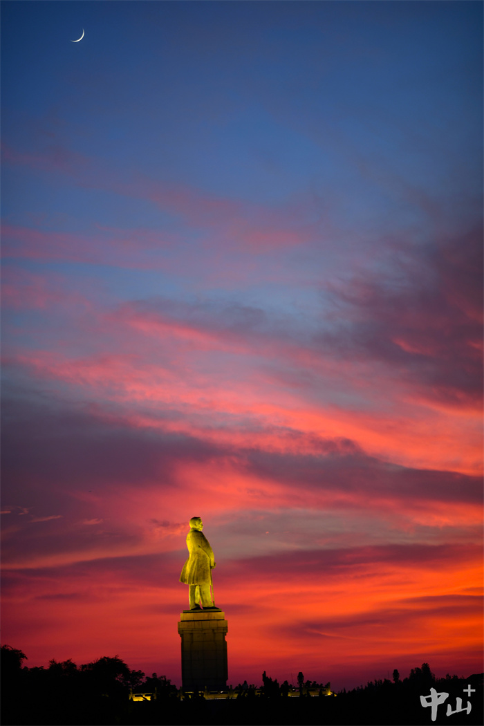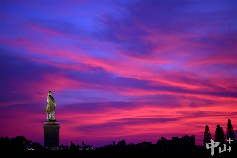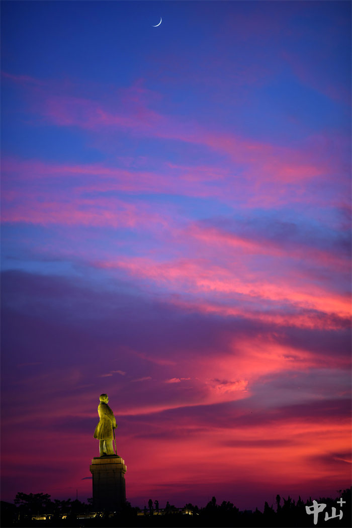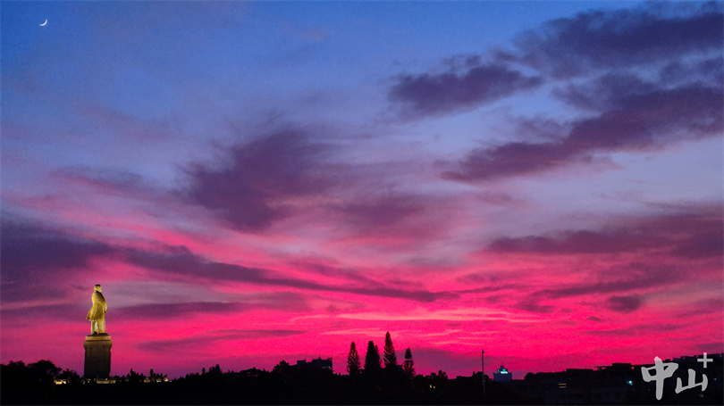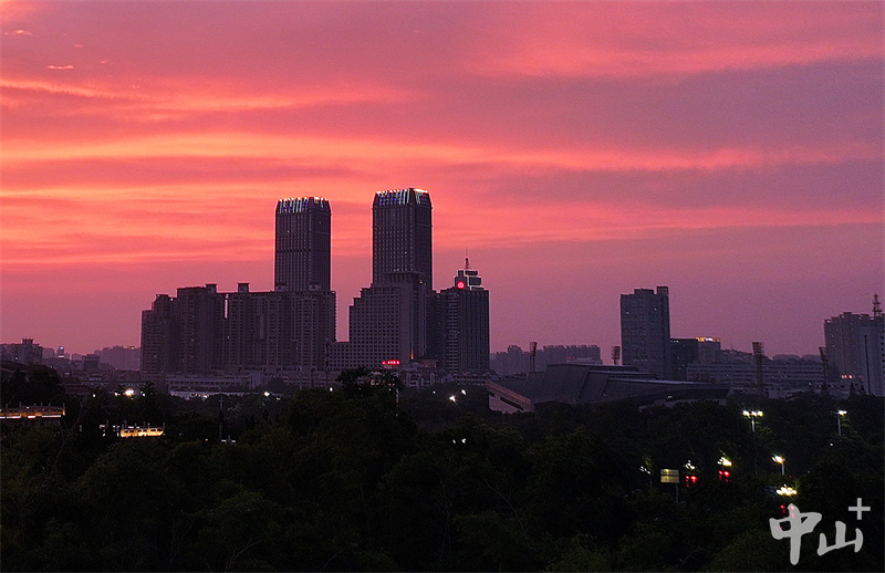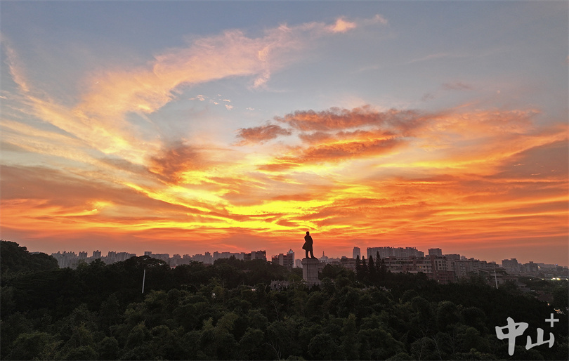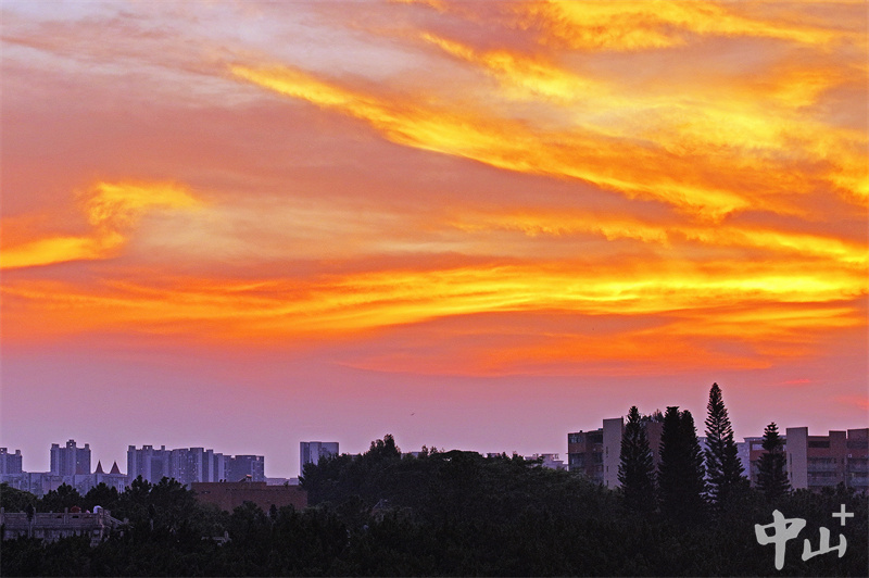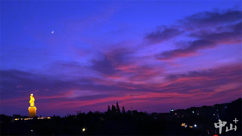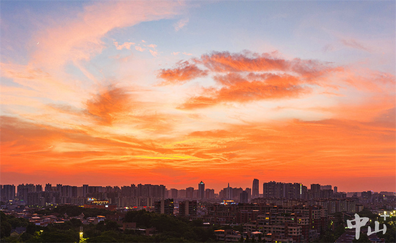 ▲8月7日是立秋,日落时分,雨后的中山城区上空云彩变幻,出现绚丽的晚霞,美不胜收。