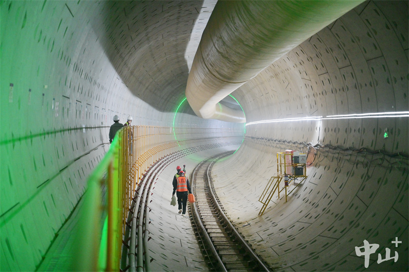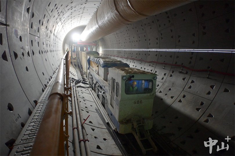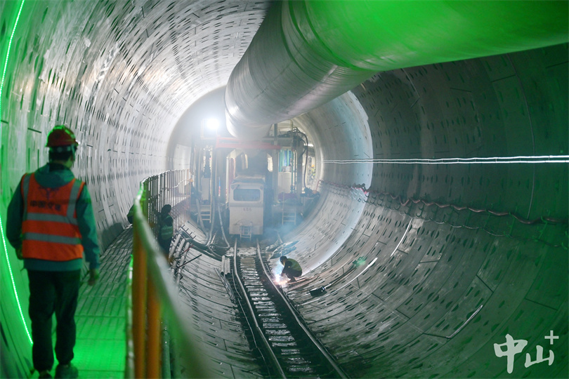 ▲1月8日,在岐江新城站至岐江道站隧道内部,盾构机正在进行掘进作业。
