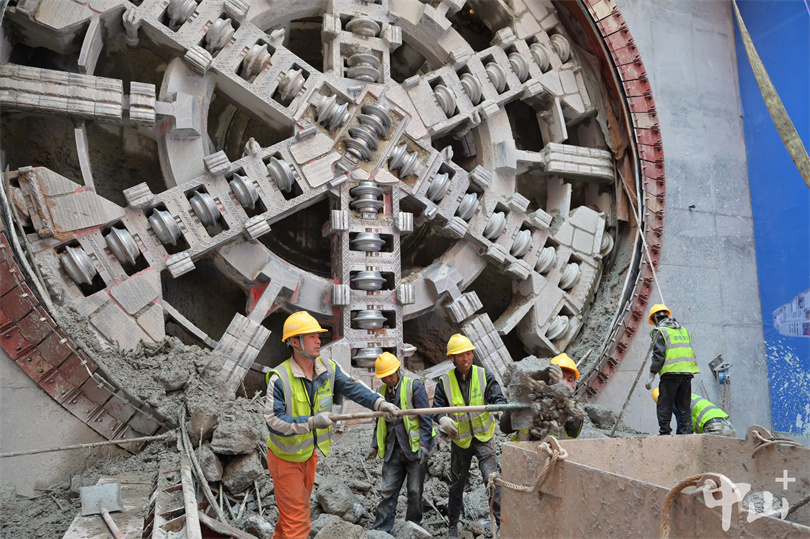 此次完成盾构区间隧道贯通的主角是“中交天和498号”盾构机,它是专门结合工程施工难点量身打造的加强型土压平衡盾构机,具备强大的开挖破岩能力和高效的施工效率。盾构机,又名盾构隧道掘进机,是一种集高科技于一体的隧道掘进专用工程机械。顾名思义,盾构机采用“盾构法”进行工作。“盾”,即“保护”,指它的盾壳。“构”,即“构筑”,指管片拼装。这可以简单理解为:一个圆柱体钢组件,沿着隧洞轴线一边向前推进,一边对土壤进行挖掘,构筑隧道。在施工过程中,盾构机犹如一条“地下蛟龙”穿越地层,挖泥掘土,破石开路,灵活展示着它的“遁地”绝技。