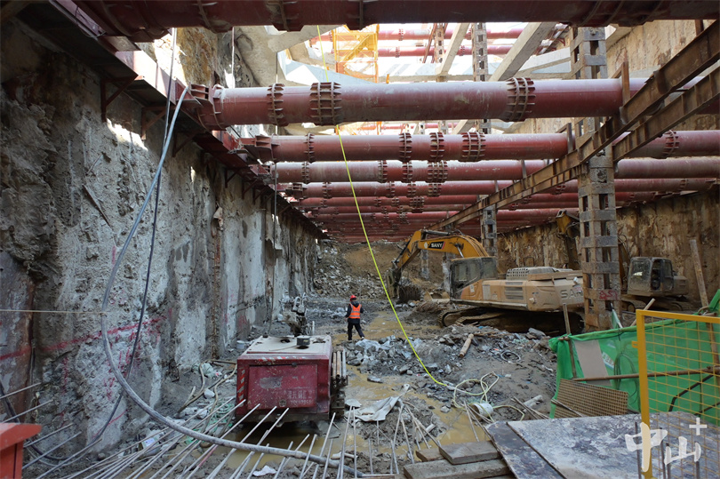 ▲1月8日,南中城际岐江道站建设现场,工人在为隧道贯通做准备工作。