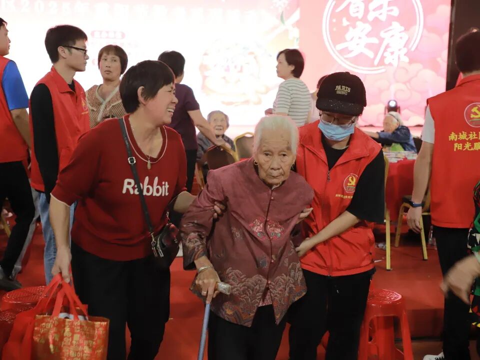 南头镇各社区以细致周到的服务营造温馨节日氛围:统一安排专车接送,专人疏导交通、维持秩序,志愿者全程陪护、细心搀扶,确保每一位长者安心赴宴、舒心参与。活动现场同步开展了形式多样的敬老公益服务,为长者带来义诊义剪、长者康复服务、银龄趣味游戏等实用服务项目,吸引不少长者参加,在温馨互动中感受到实实在在的社区温暖。